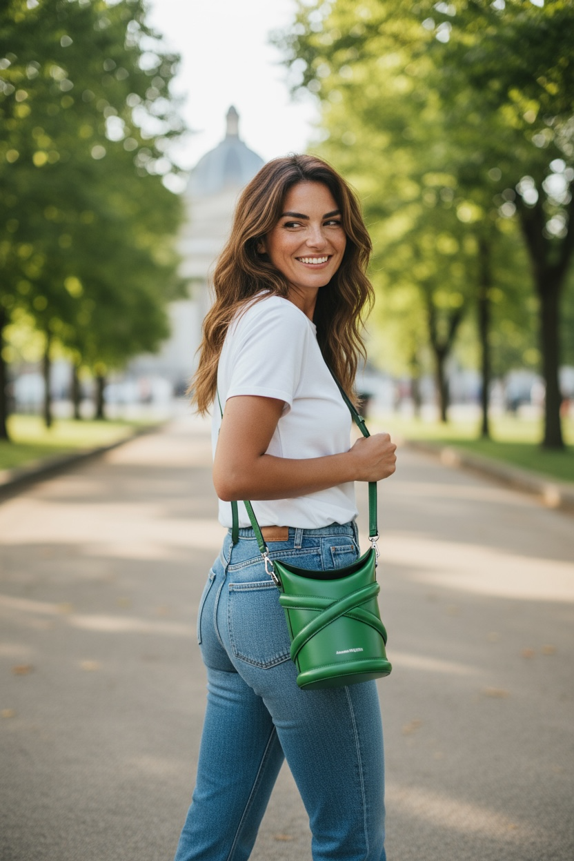 Alexander McQueen Bag, Green Calfskin Mini Curve Bucket Bag