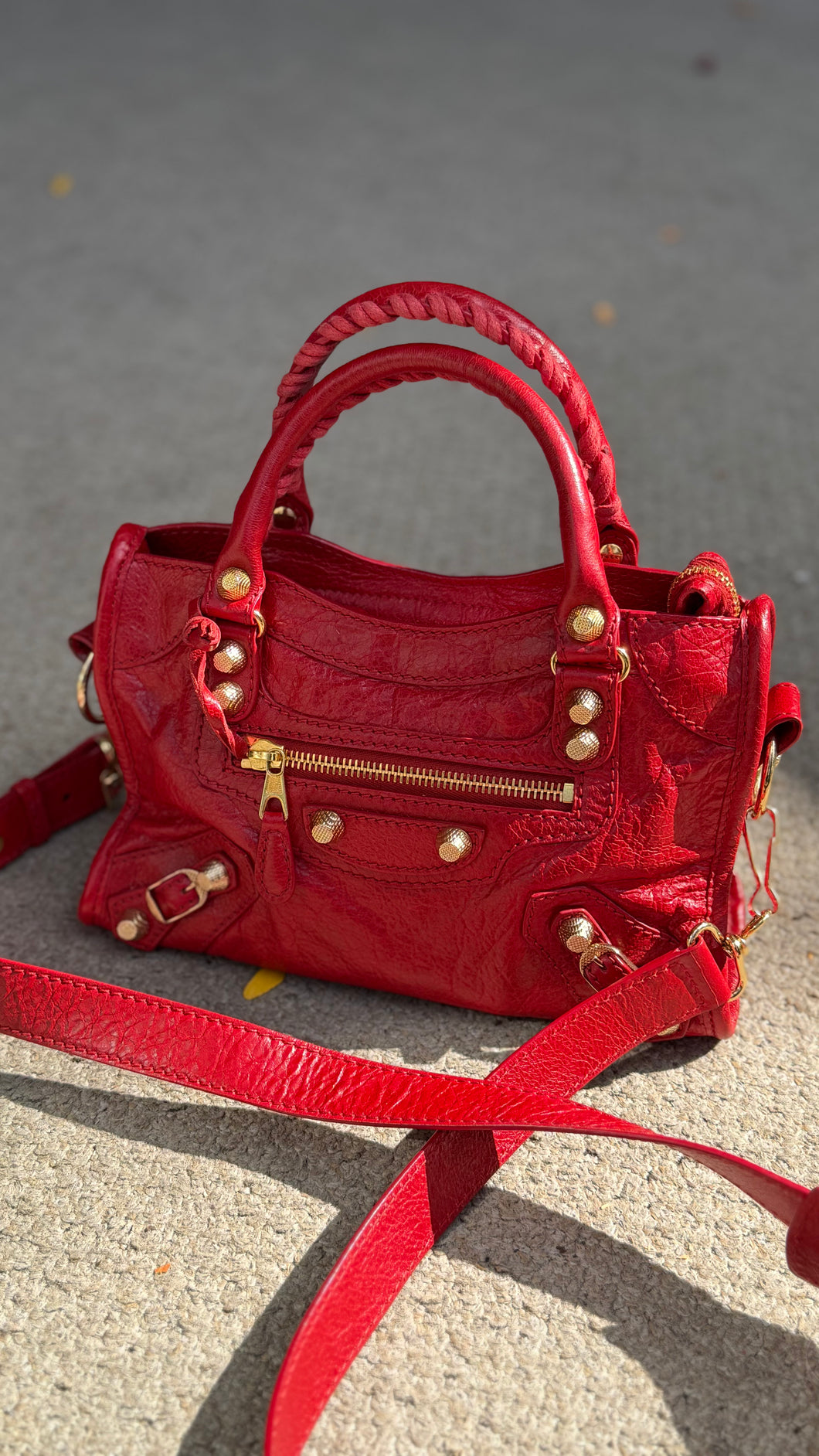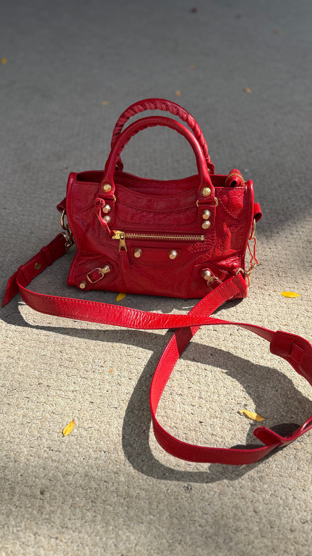 Balenciaga Bag, Red Agneau Giant 12 Gold Hardware Mini City Crossbody
