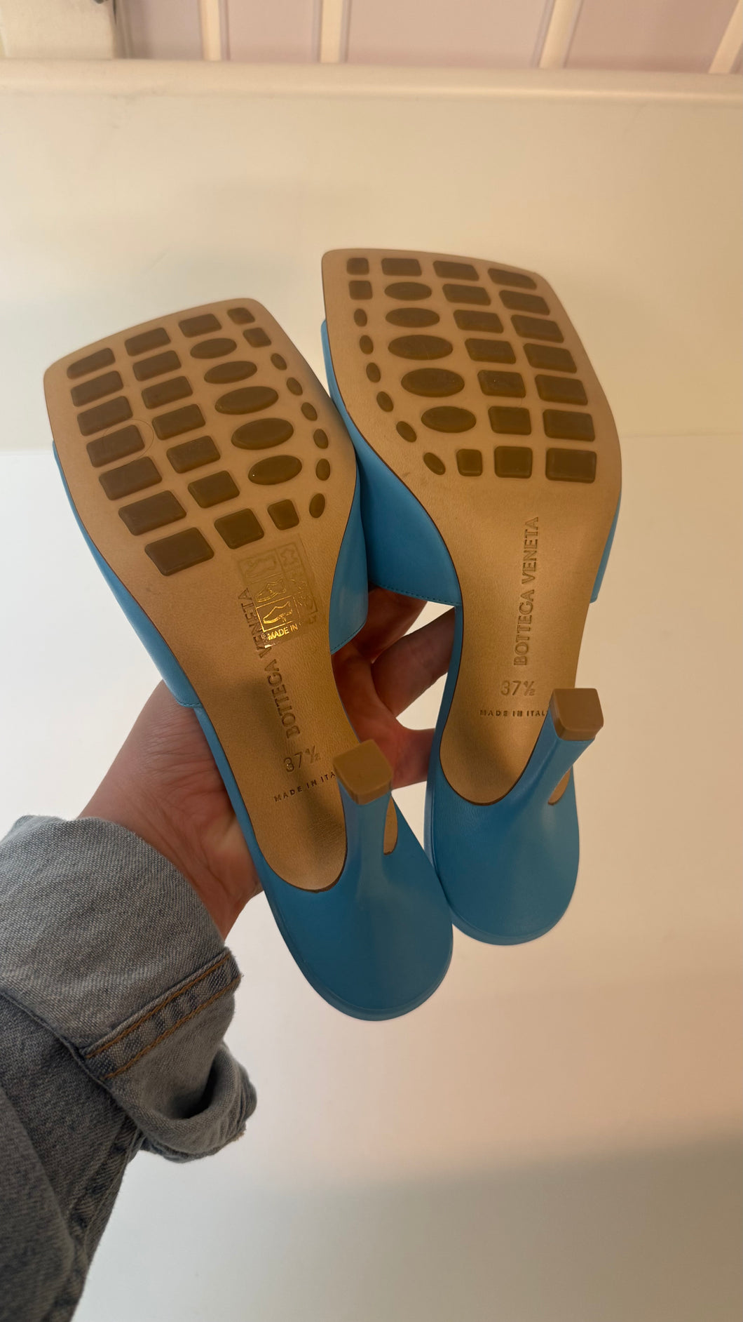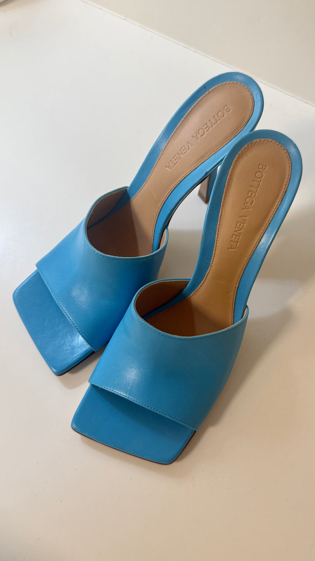 Bottega Veneta Shoes, Blue Lambskin Stretch Mule Sandals (size 37.5)