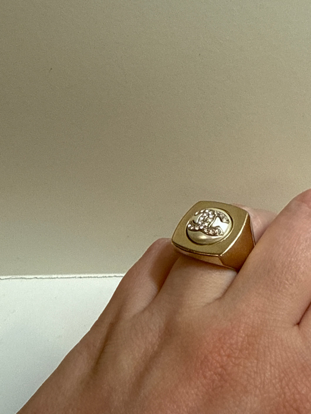 Chanel 2024 Faux Pearl & Gold-Plated CC Cocktail Ring