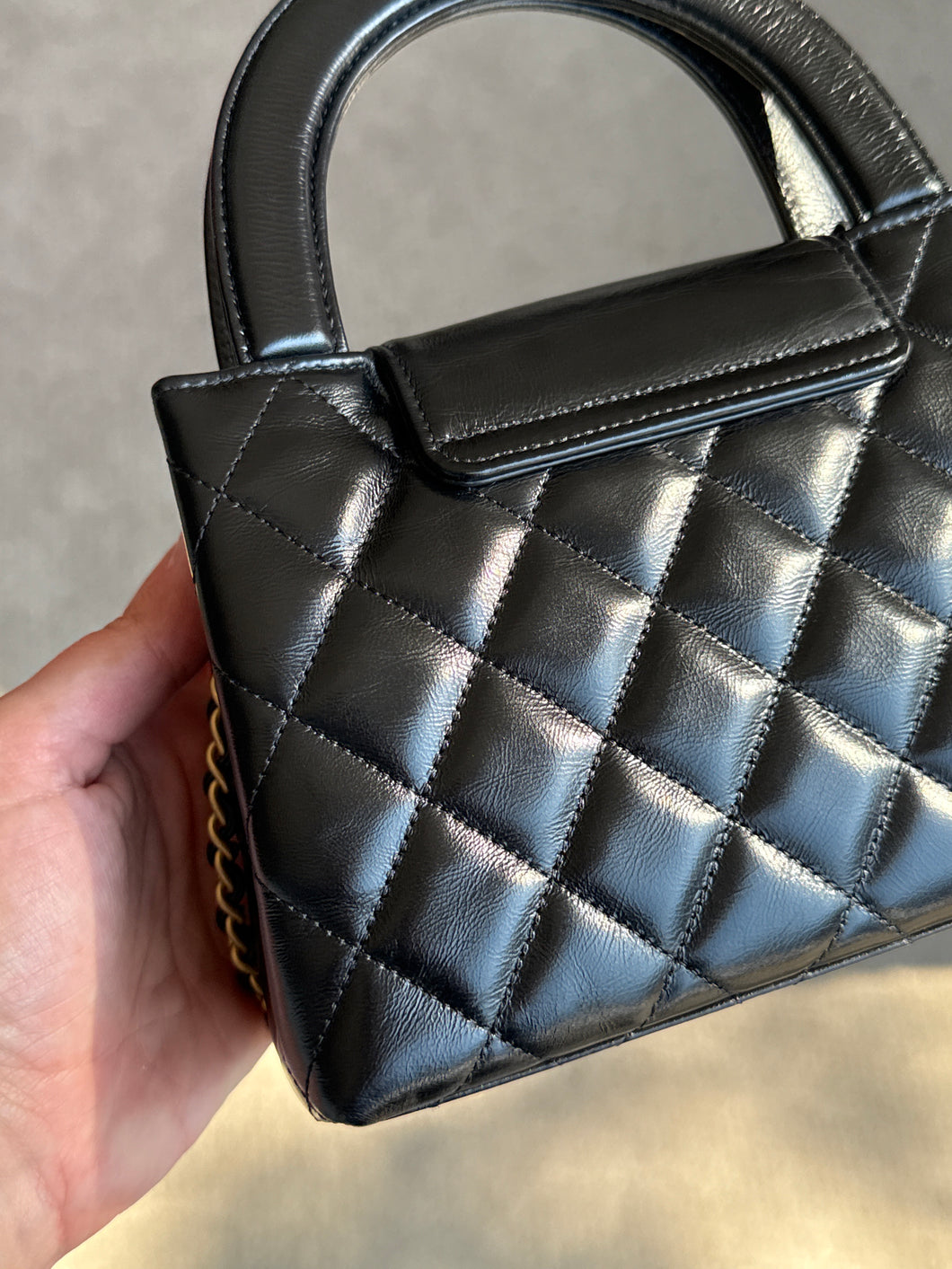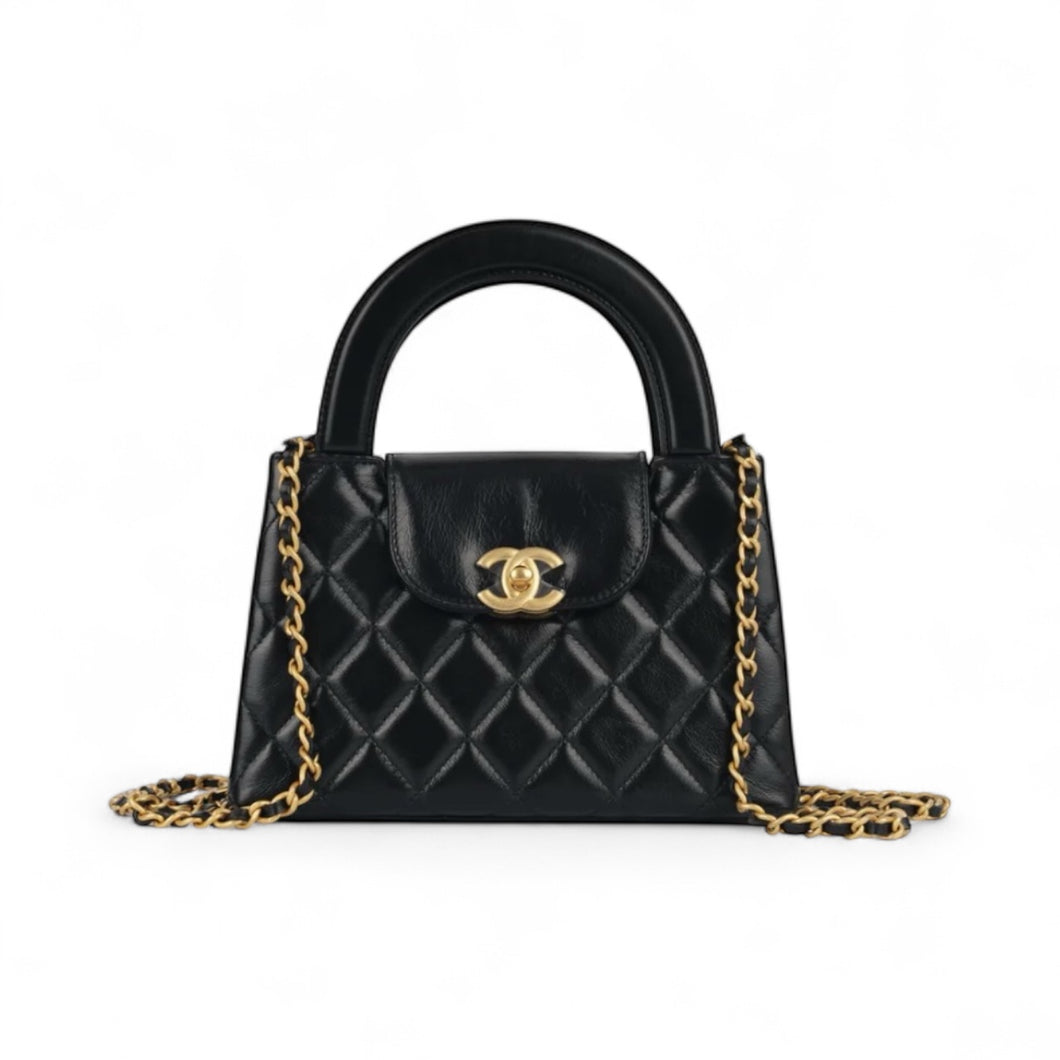 Chanel Bag, Black Shiny Aged Calfskin Quilted Nano Kelly Shopper Bag