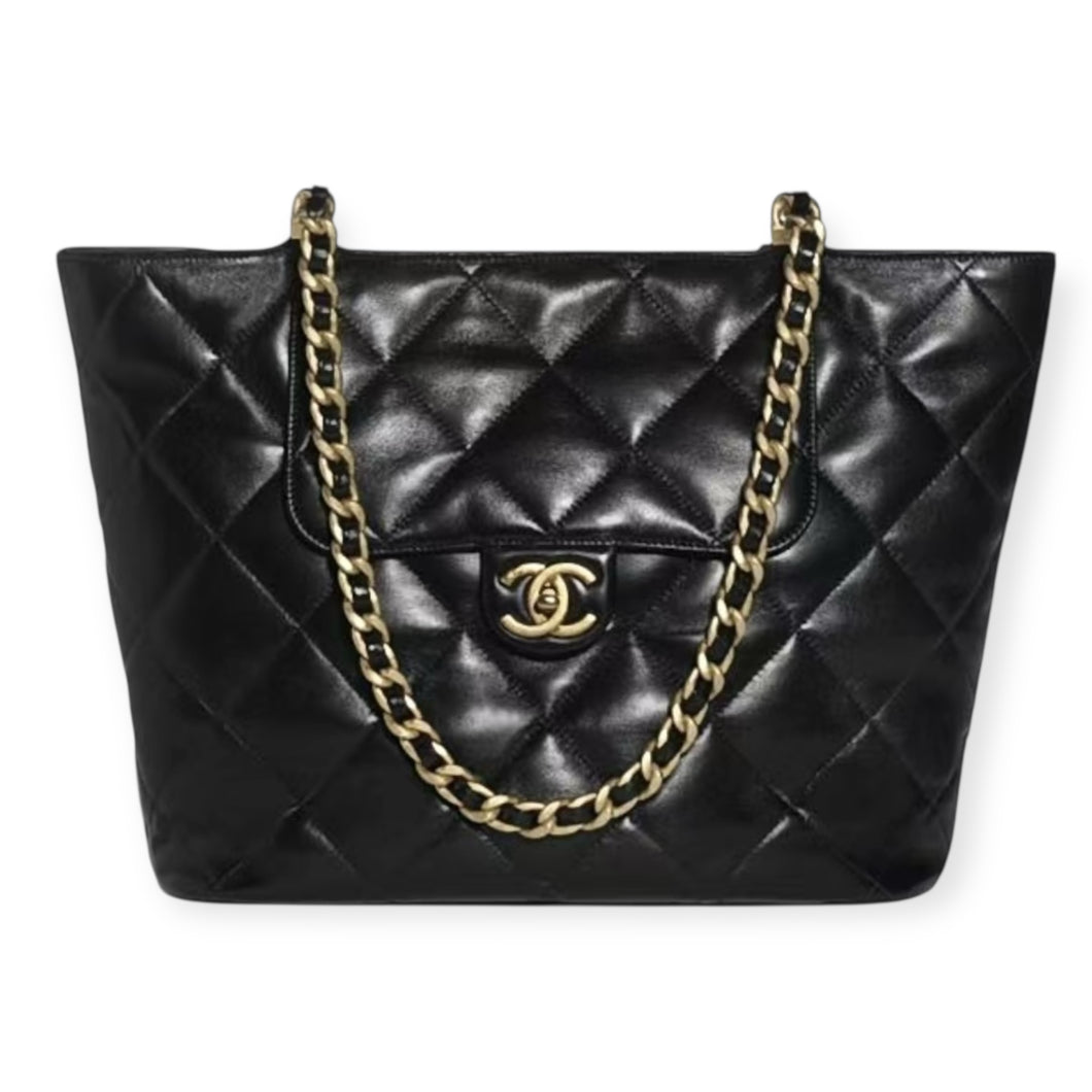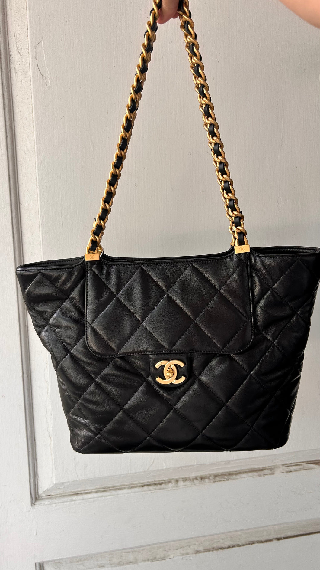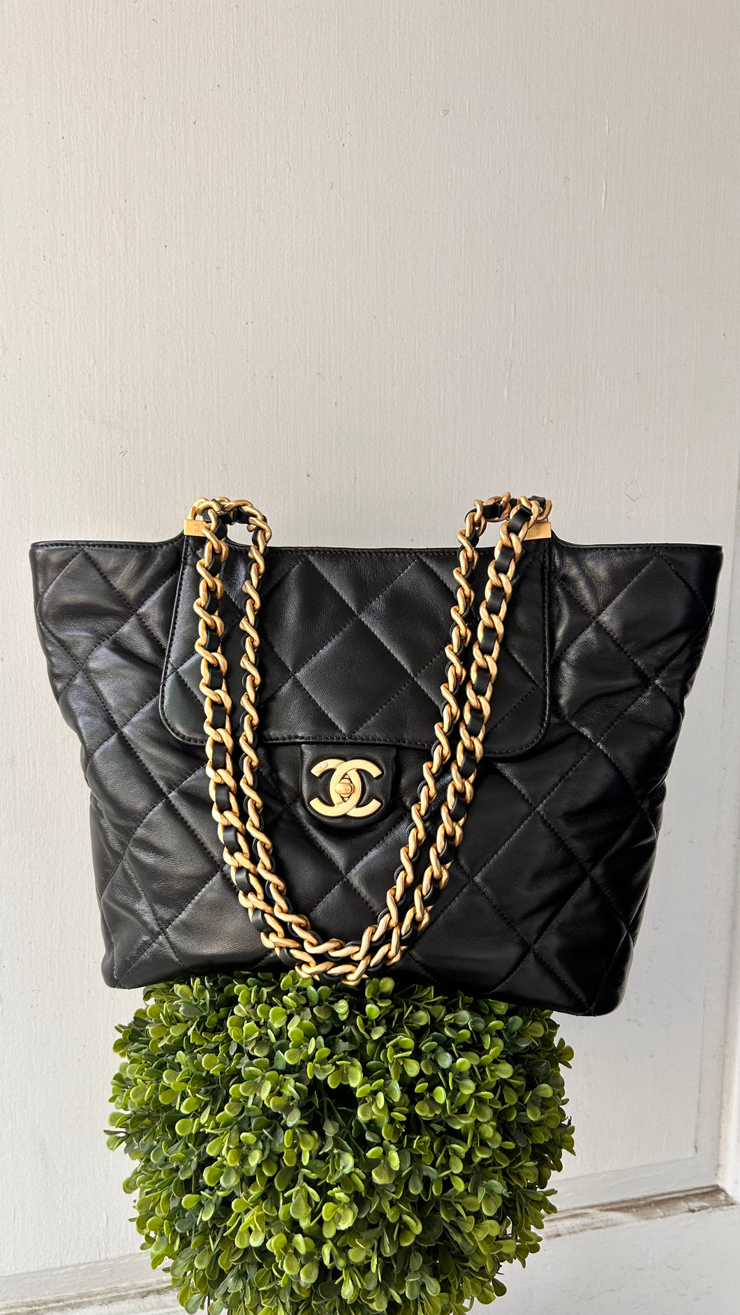 Chanel Bag, Small Black Lamsbkin Leather Shopping Bag
