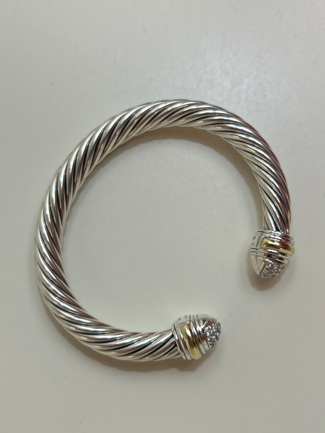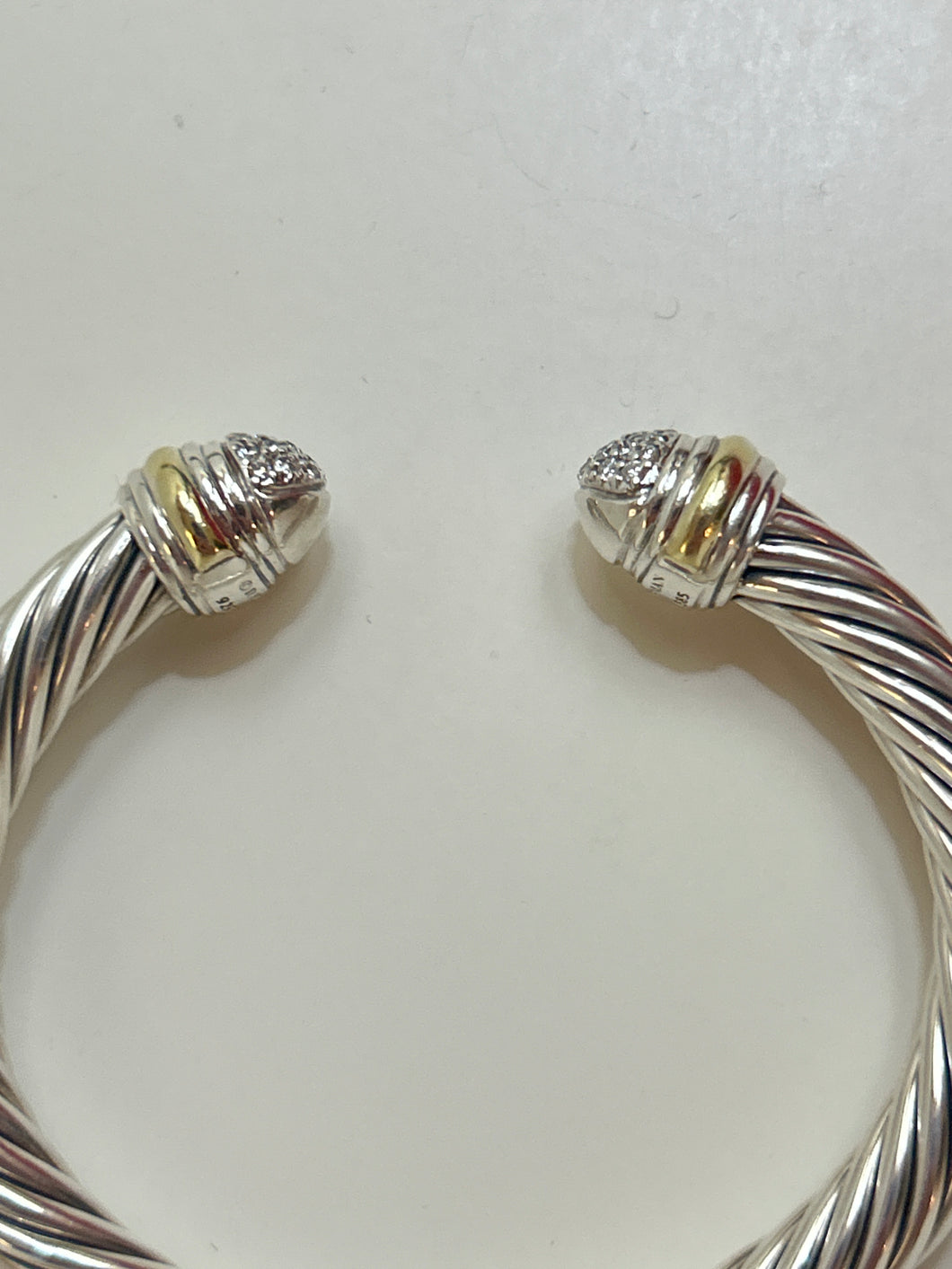 David Yurman Classic Cable Sterling Silver with 18K Yellow Gold and Pavé Diamond Domes, 7mm