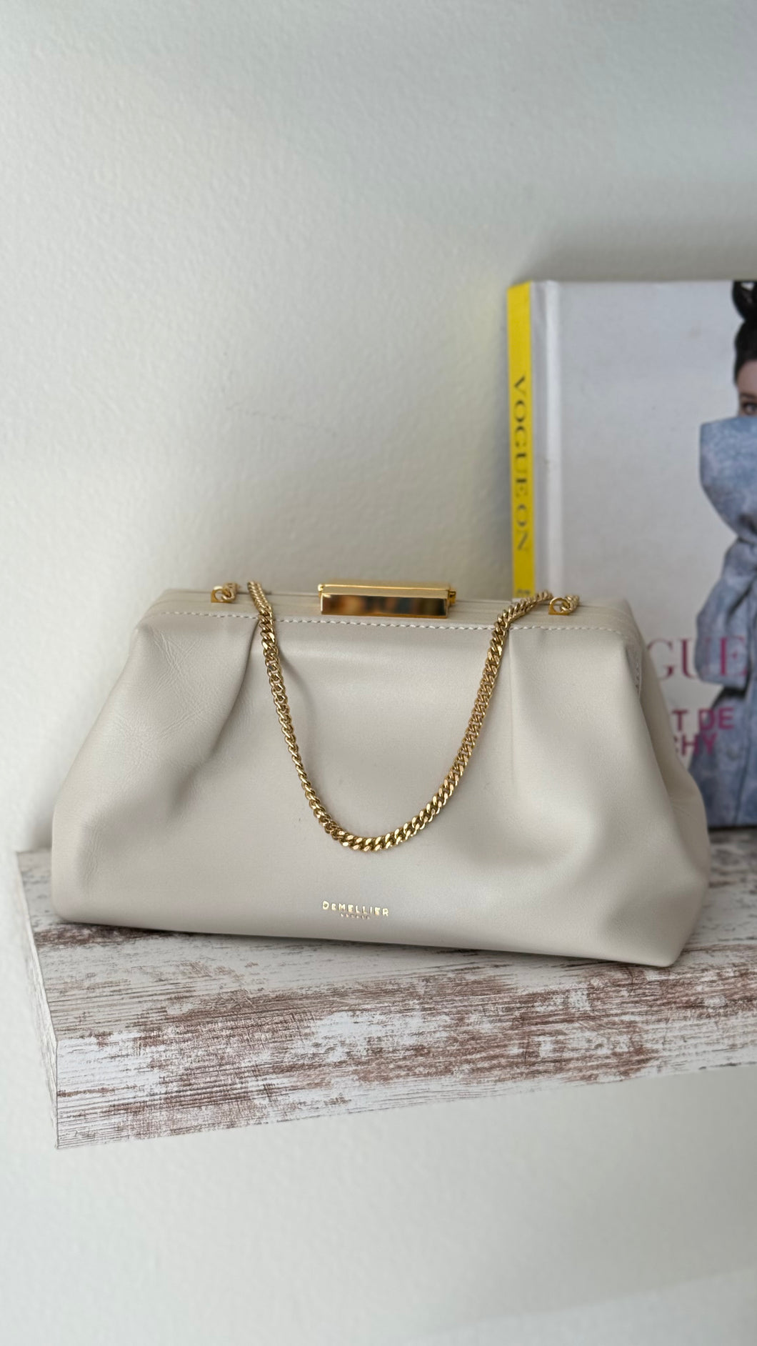 Quilted into a supple leather creation, this pouch flaunts an accented chain strap for esteemed elegance.