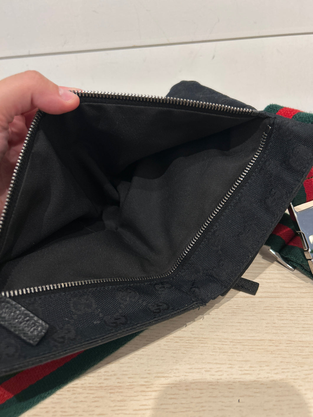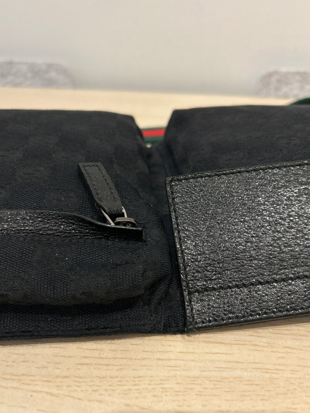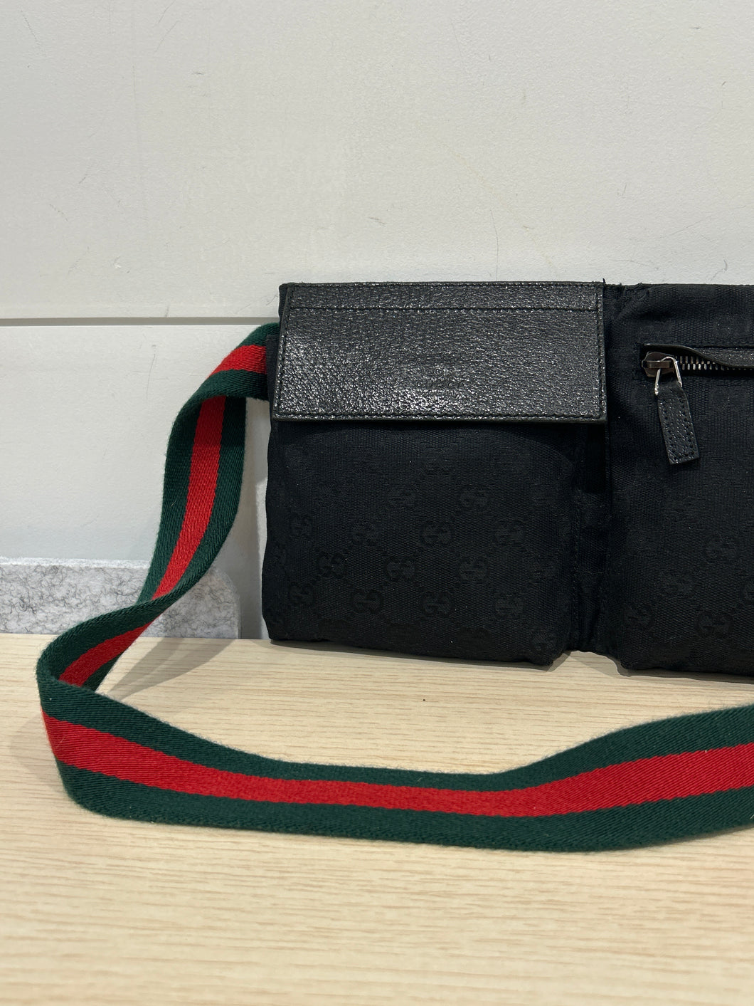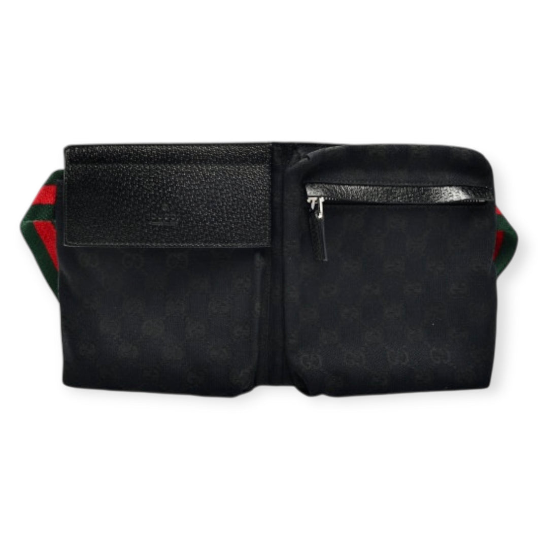 Gucci Bag, Black GG Monogram Web Double Pocket Belt Bag