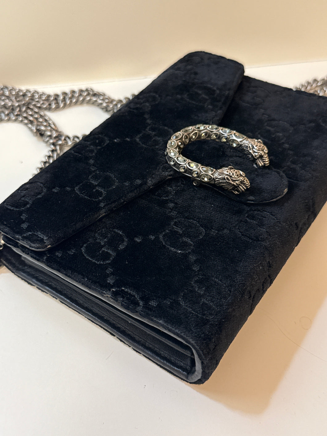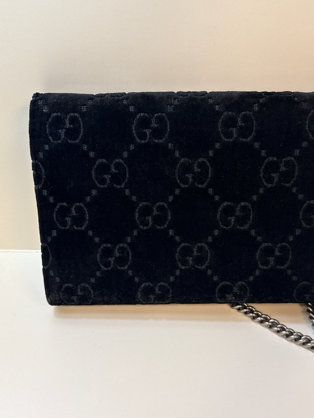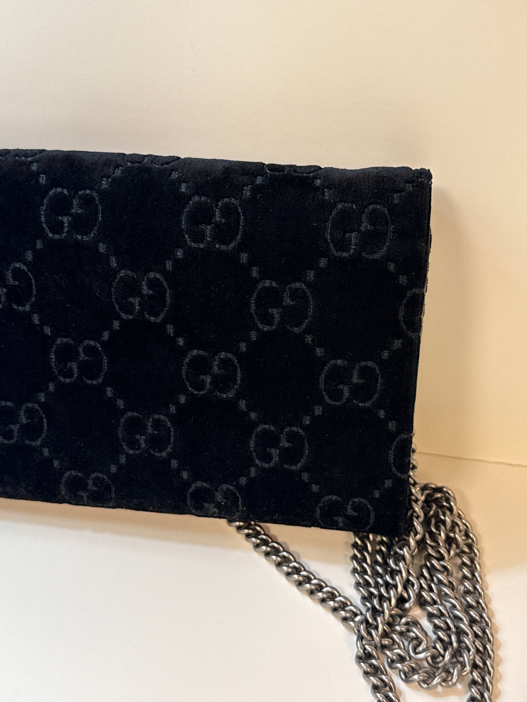 Gucci Bag, Black Velvet GG Monogram Mini Dionysus Wallet on Chain
