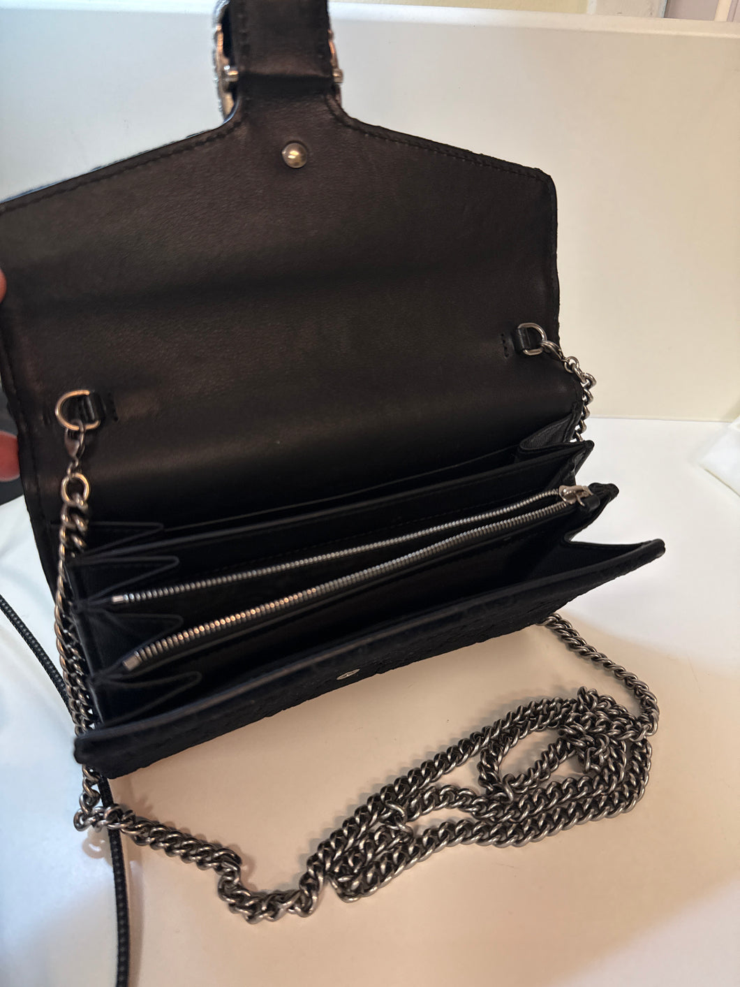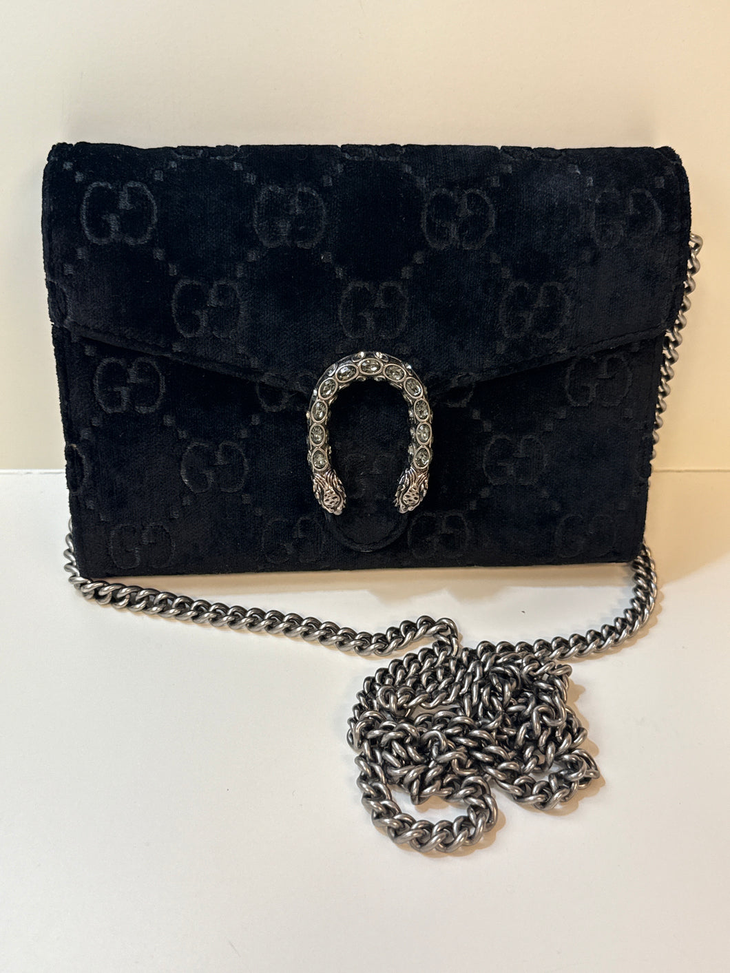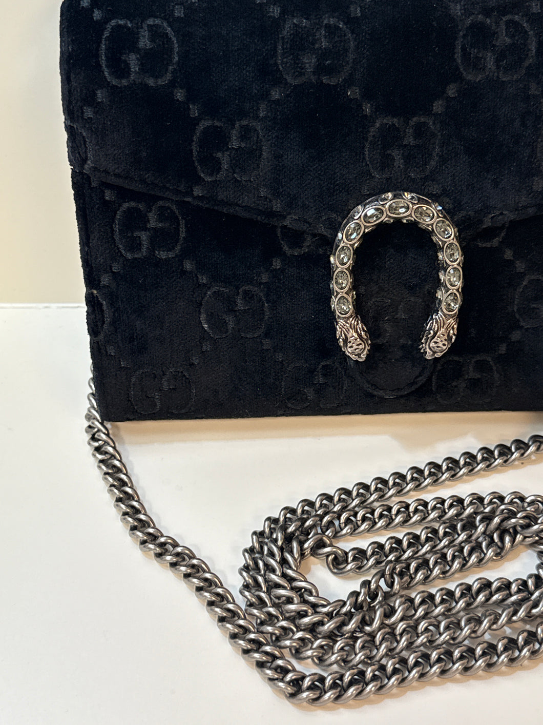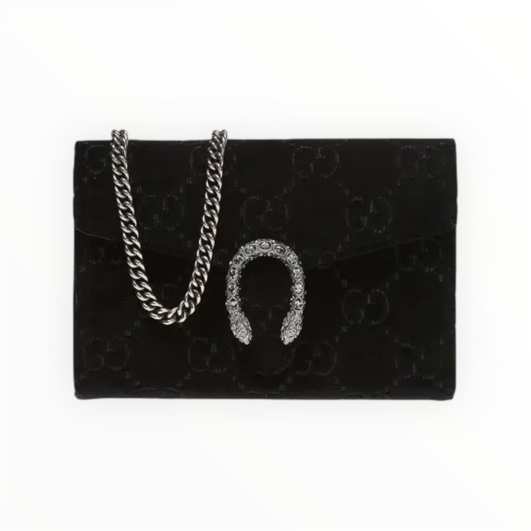 Gucci Bag, Black Velvet GG Monogram Mini Dionysus Wallet on Chain