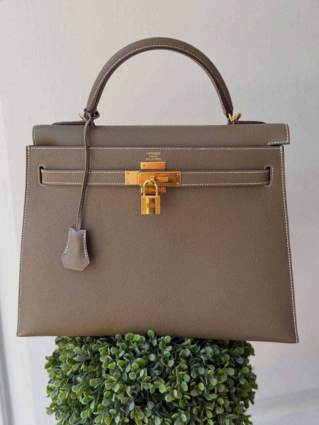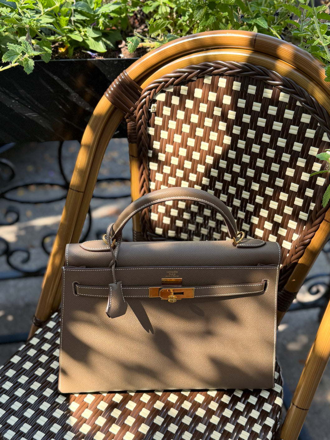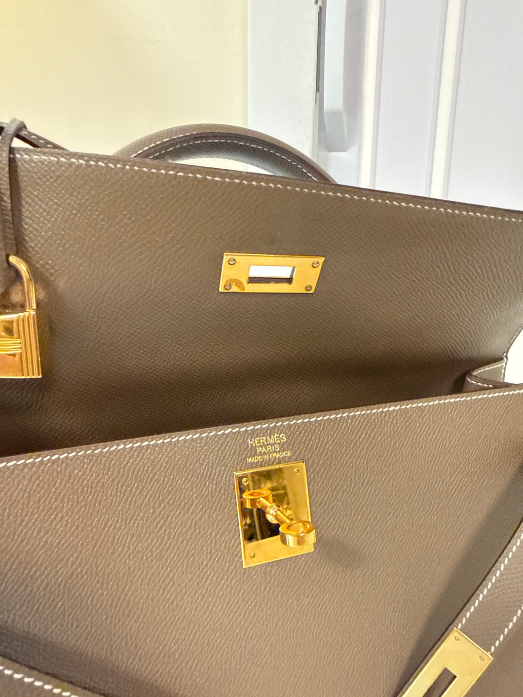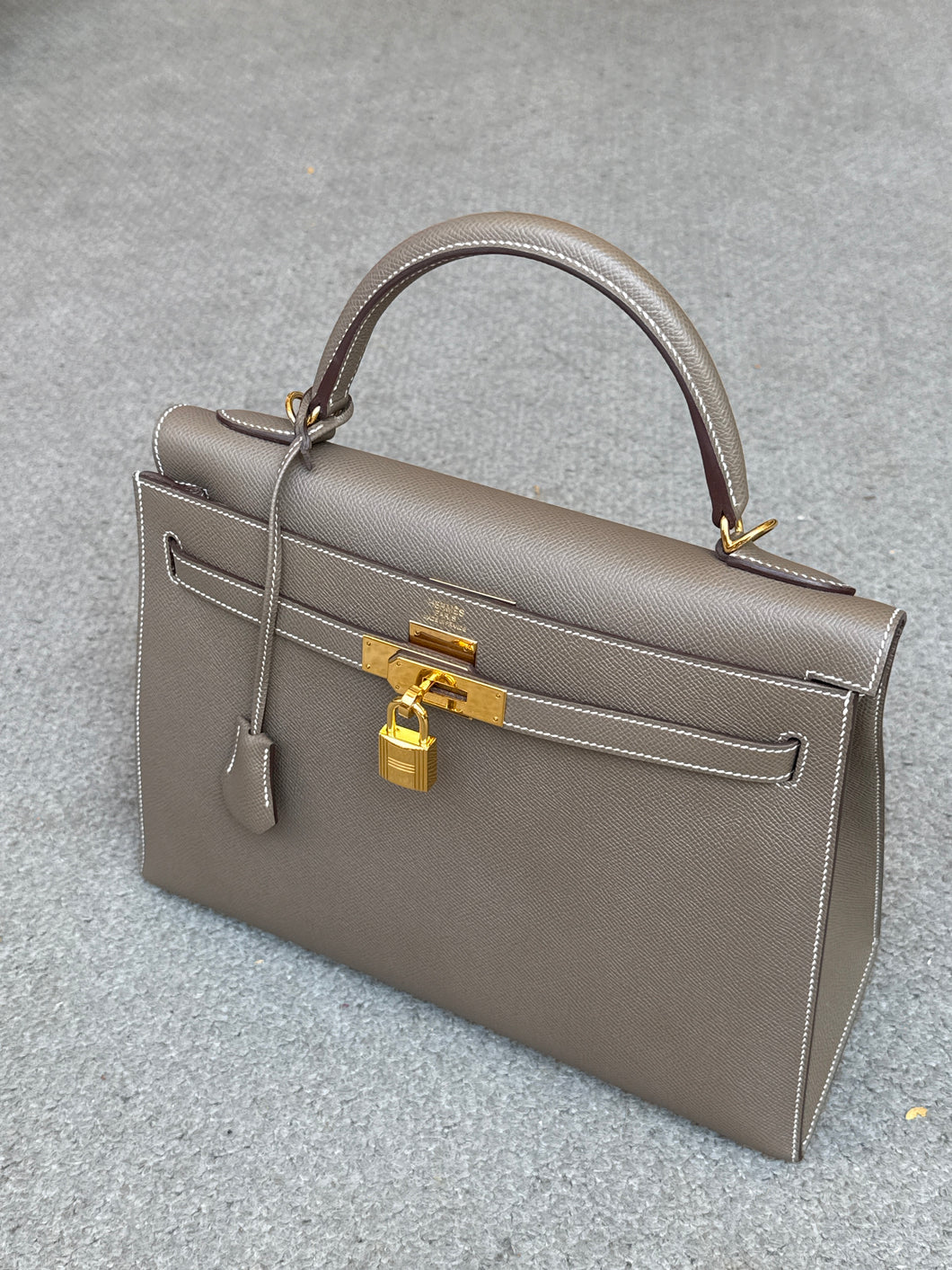 Hermès Bag, Kelly Sellier 32 Etoupe Epsom with Gold Hardware