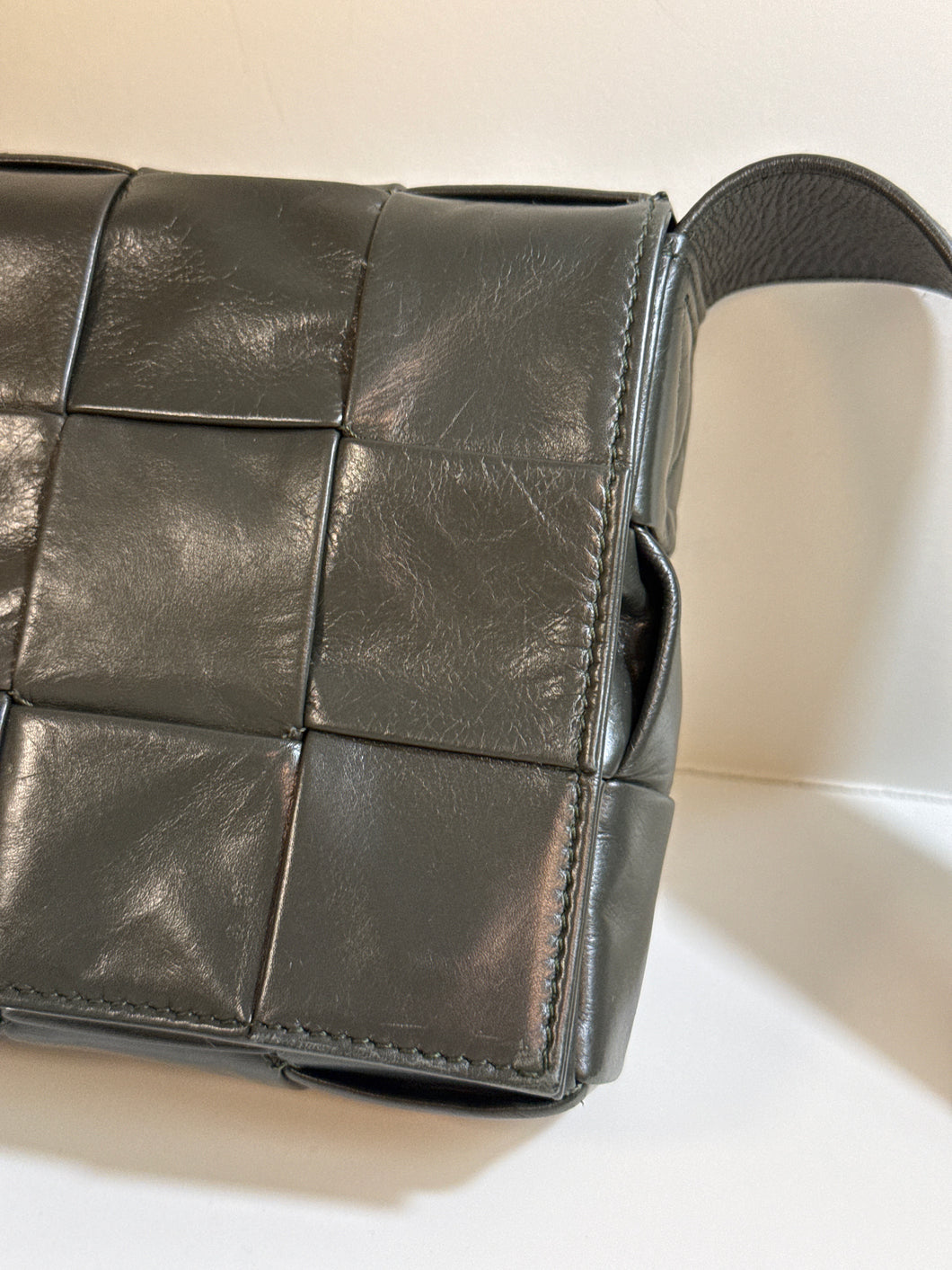 Bottega Veneta Bag, Dark Olive Calfskin Intrecciato Stretch Cassette Crossbody