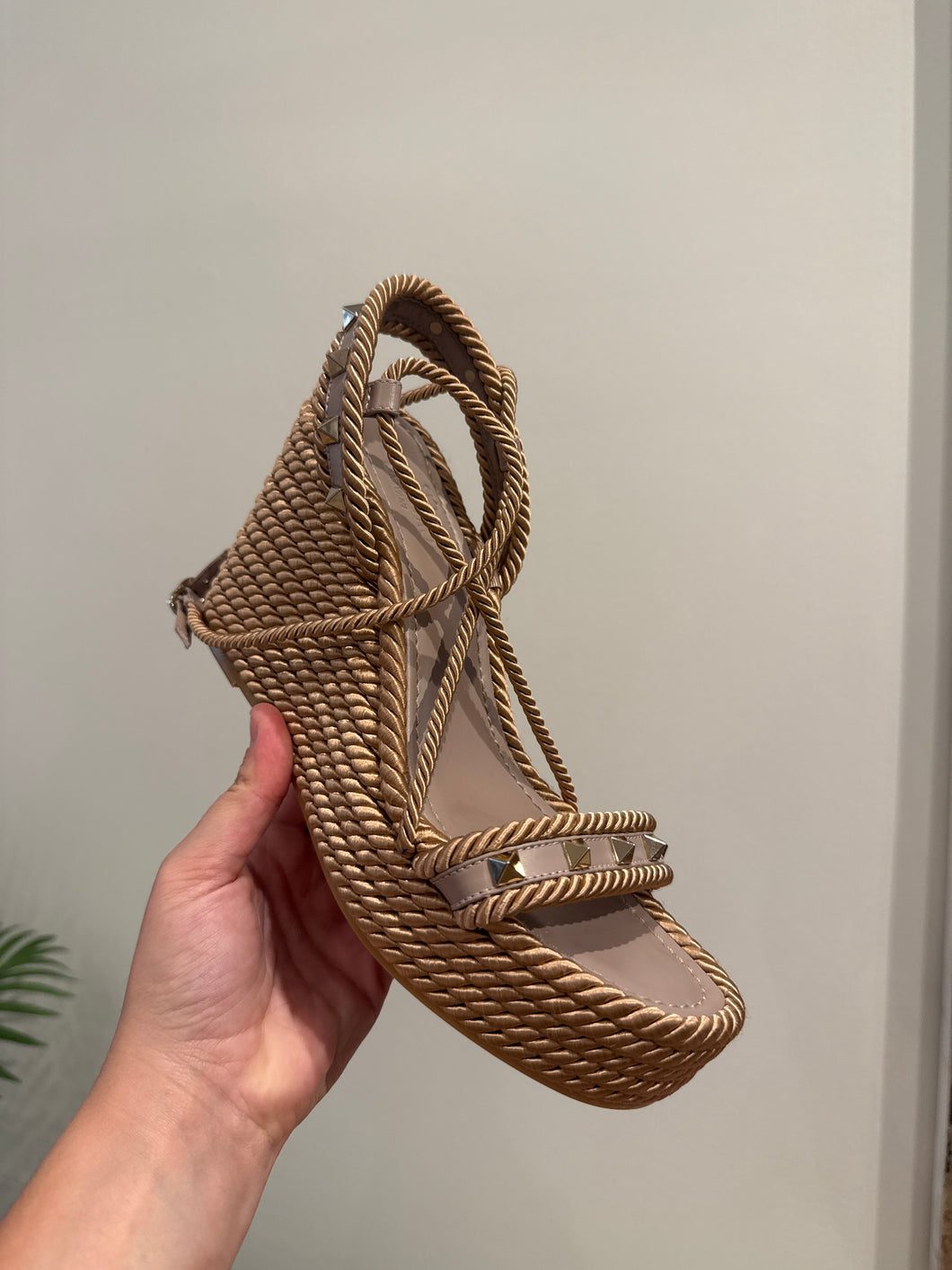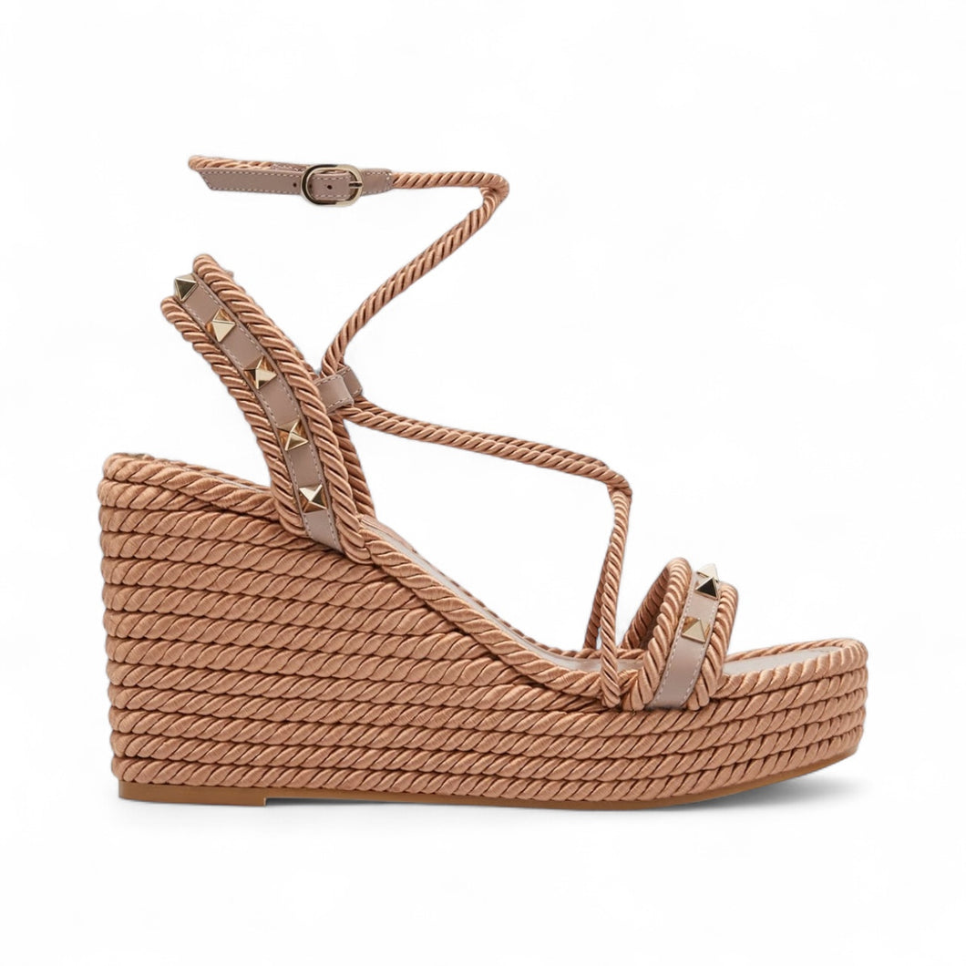 Valentino Shoes, Nude Rockstud Torchon 115mm Espadrille Sandals (size 38)